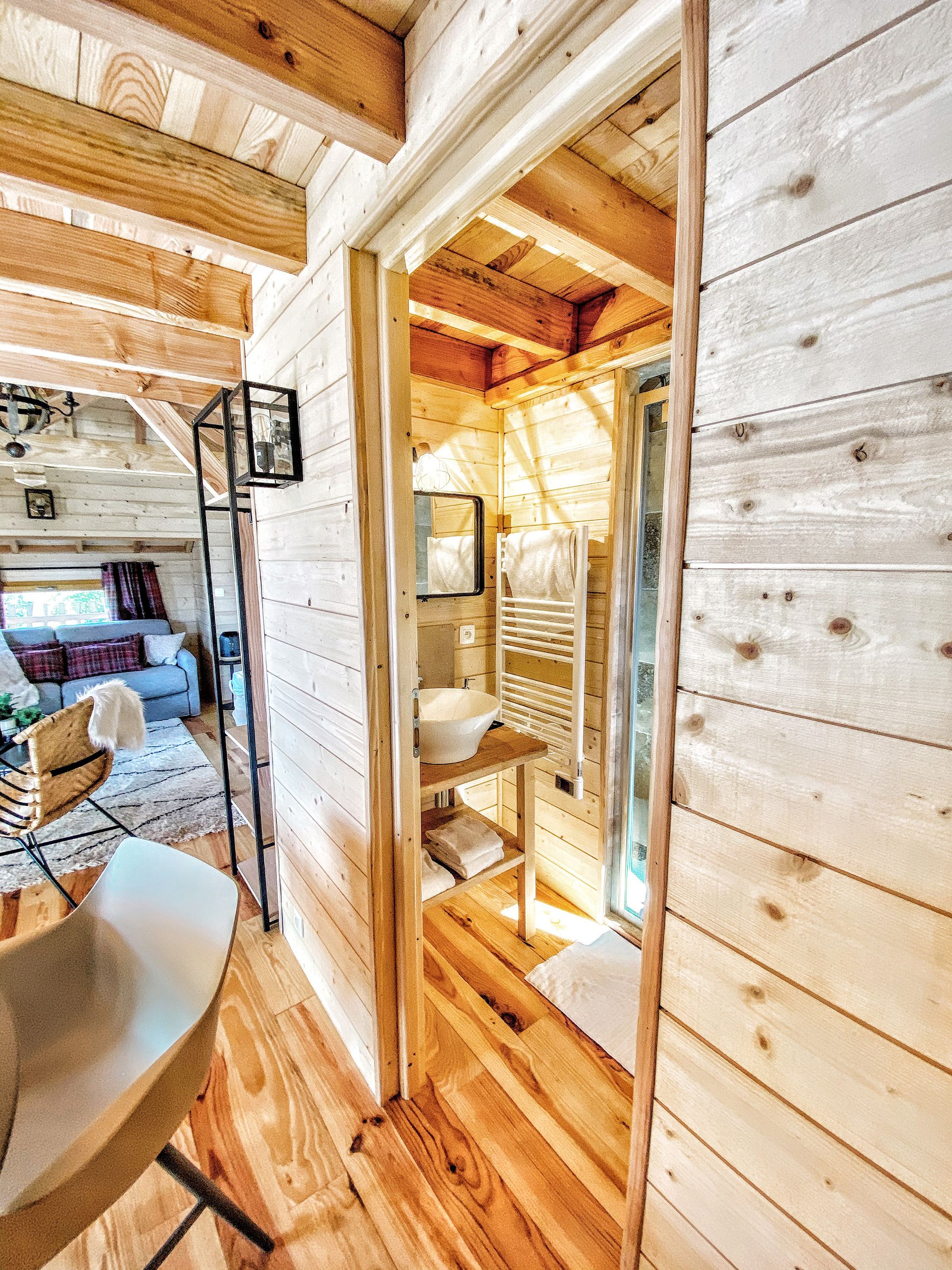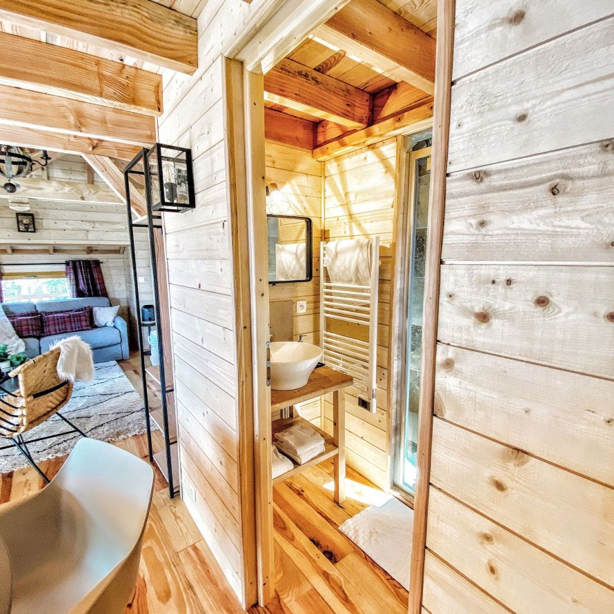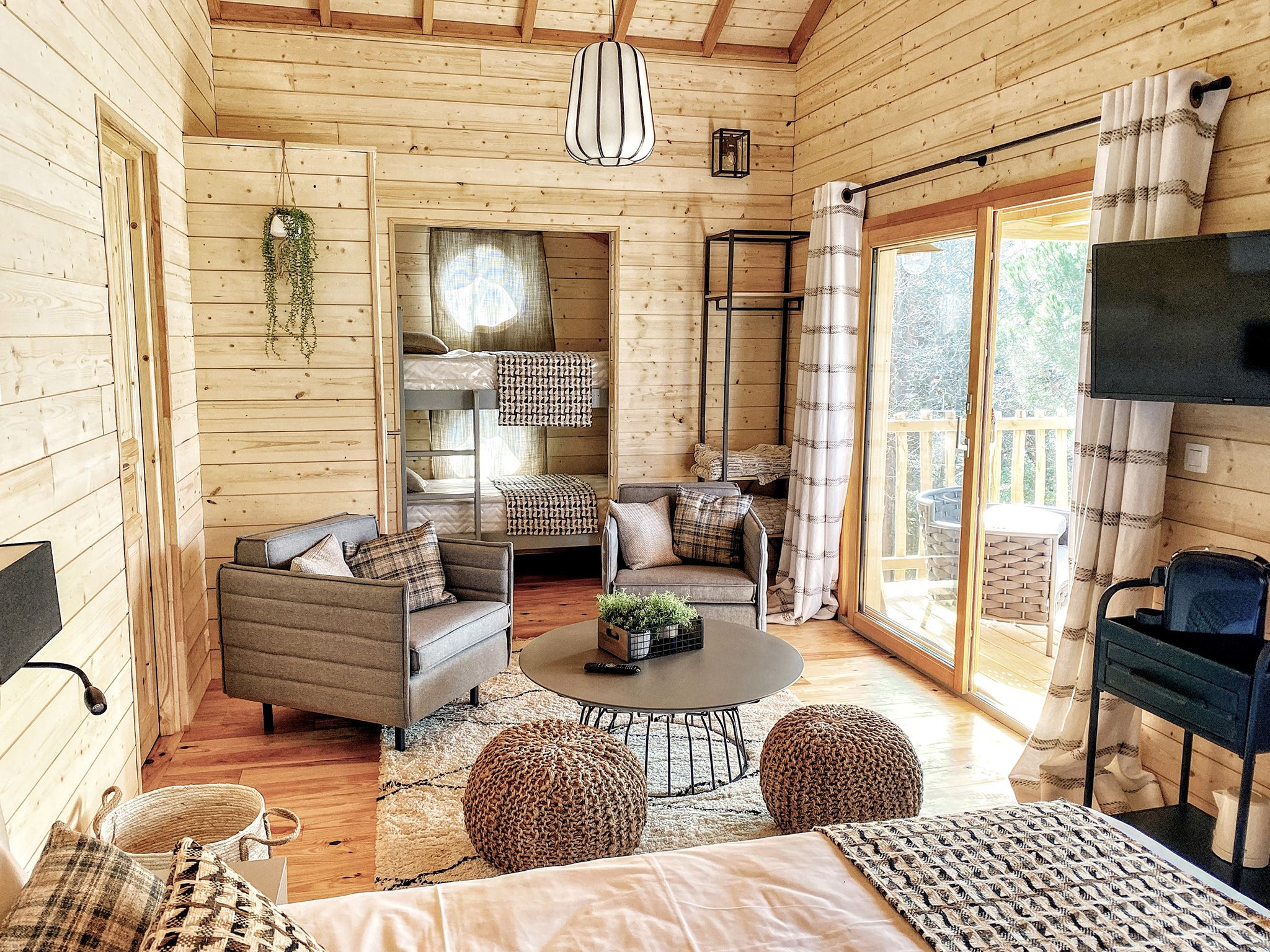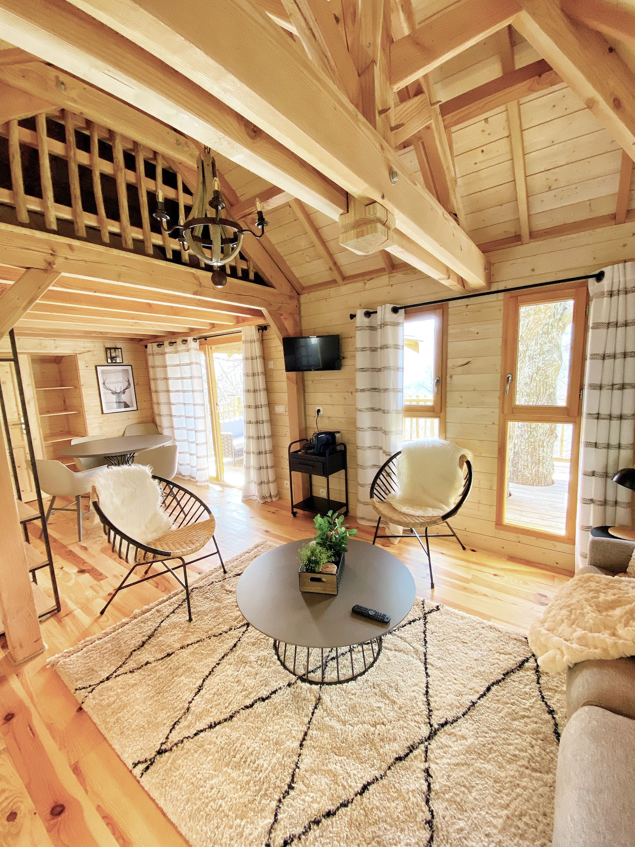 Toutes perchées en surplomb du parc, chacune possède une terrasse avec salon extérieur, un coin salon à l’intérieur et une salle de bain au confort moderne.