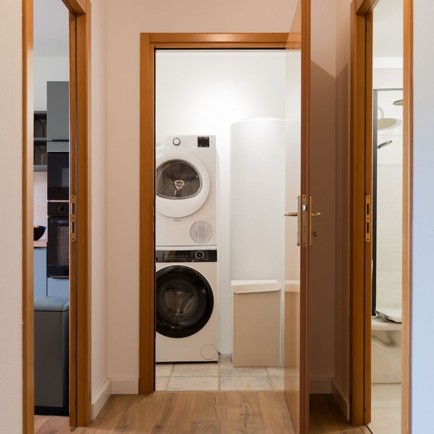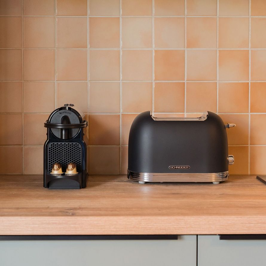 L’appartement est entièrement équipé pour vous sentir comme chez vous, avec notamment une machine à café, un lave-linge et un sèche-linge.