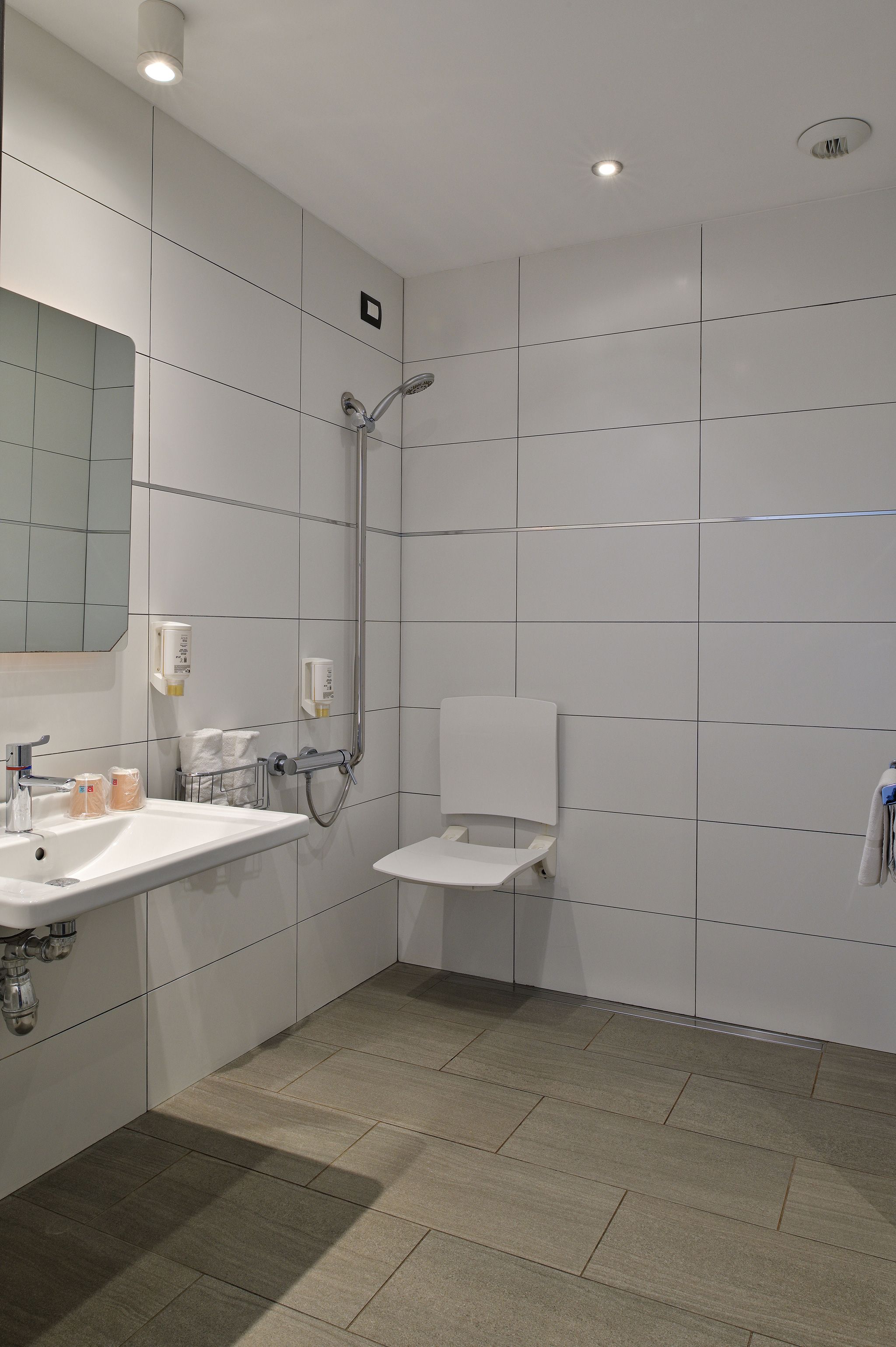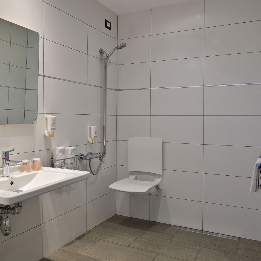 Trois chambres, situées en rez-de-chaussée, ont été spécialement aménagées pour accueillir les personnes à mobilité réduite.