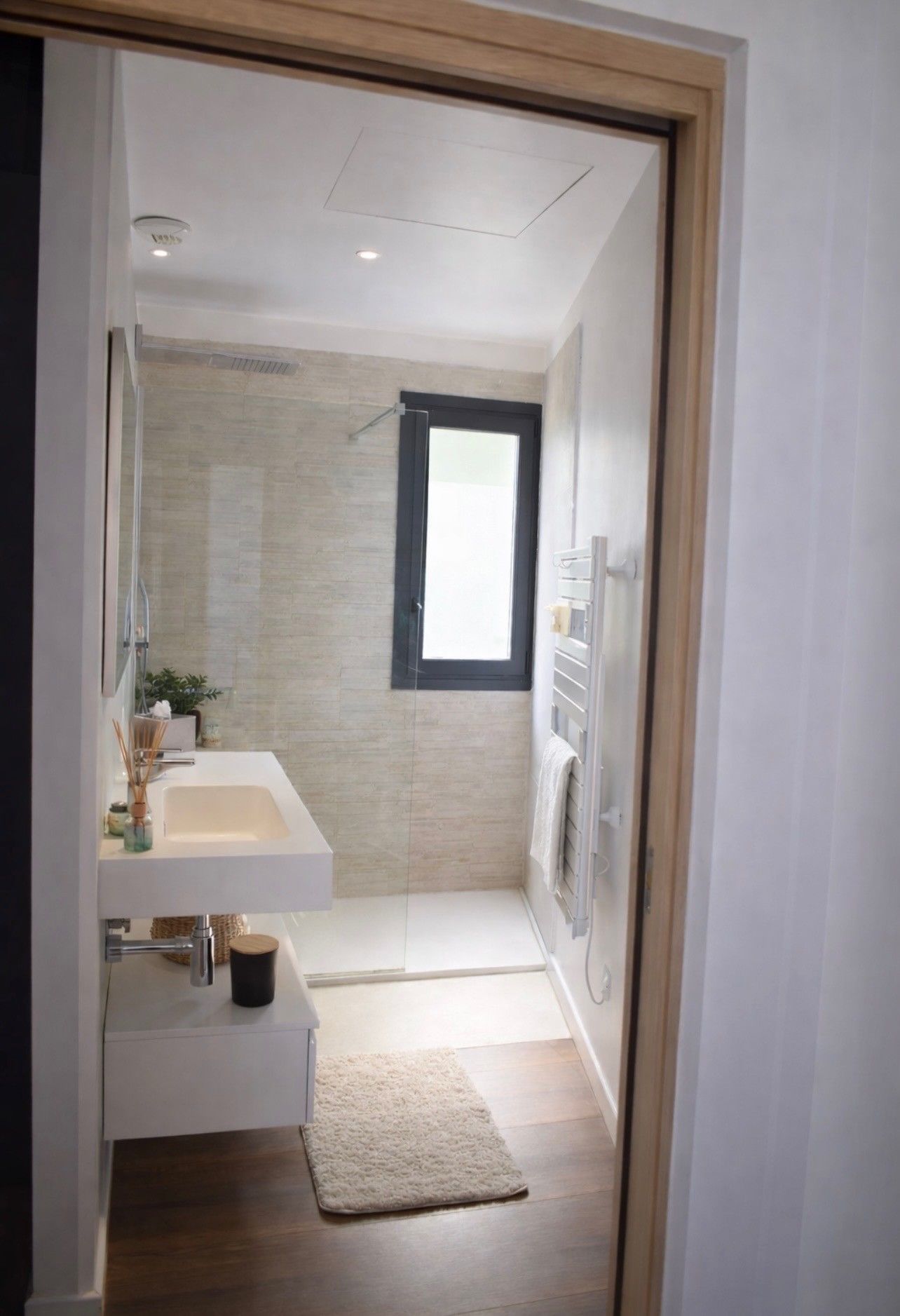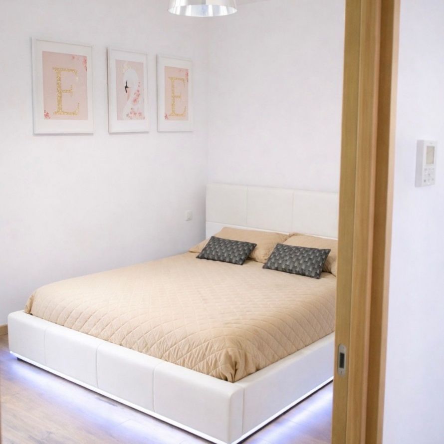 Spacieuse et lumineuse, elle comprend trois chambres : deux avec lit double en 160 cm et grands placards, et une troisième avec deux lits simples en 90 cm modulables en lit double de 180 cm, salle de bain attenante et deux dressings.