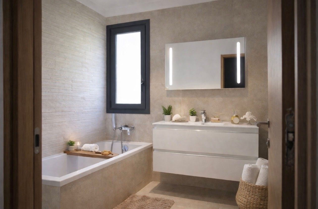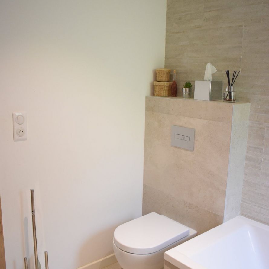 Deux salles de bain modernes sont disponibles : une avec baignoire et WC, une autre attenante à la chambre parentale, plus un WC indépendant.