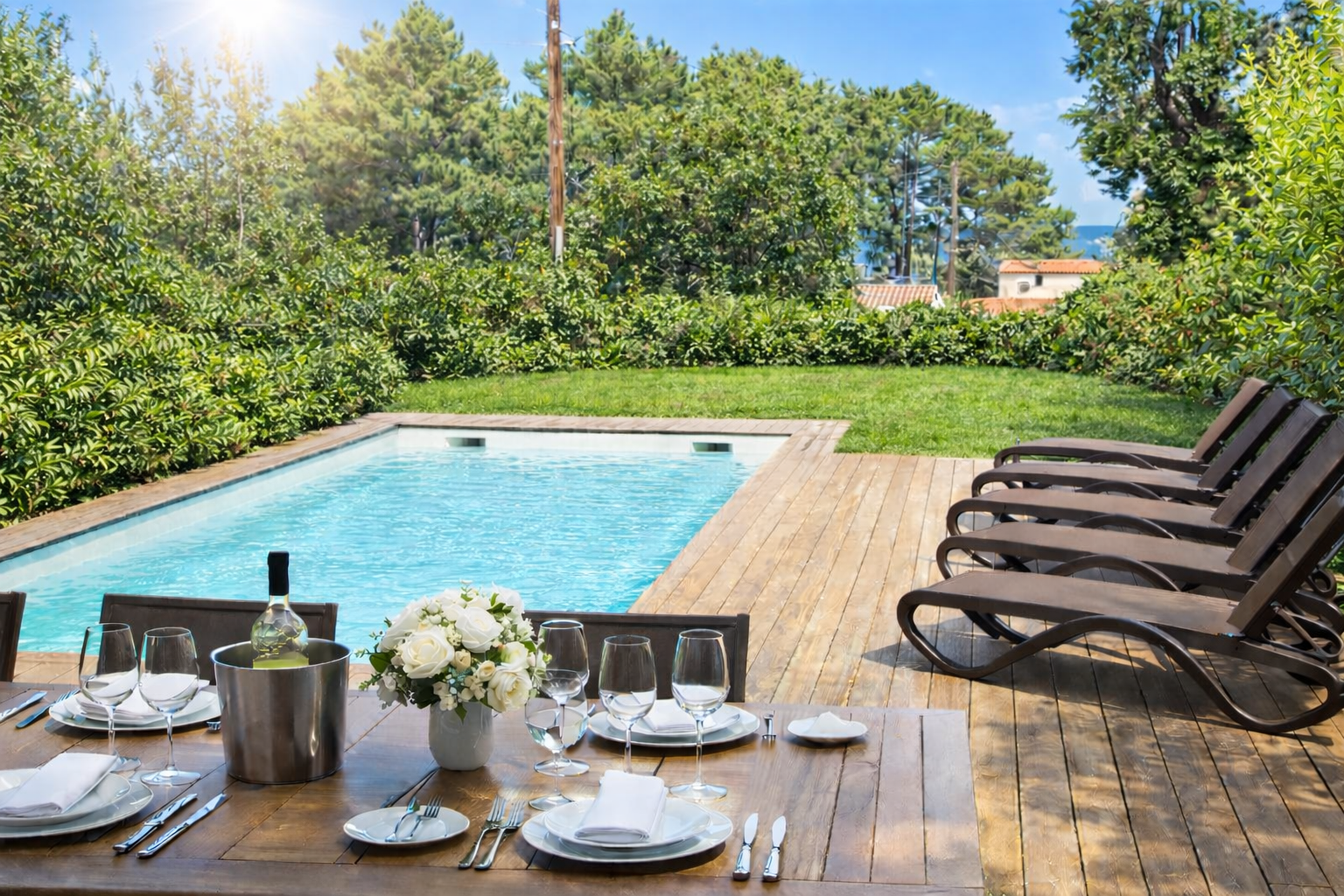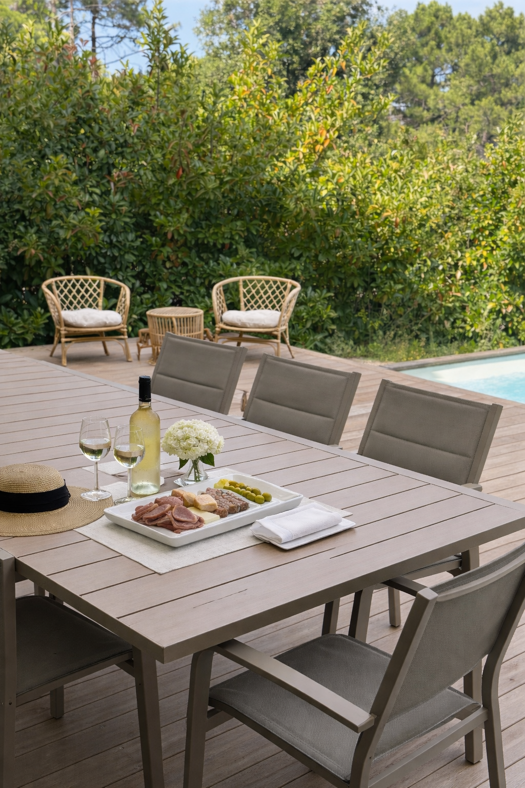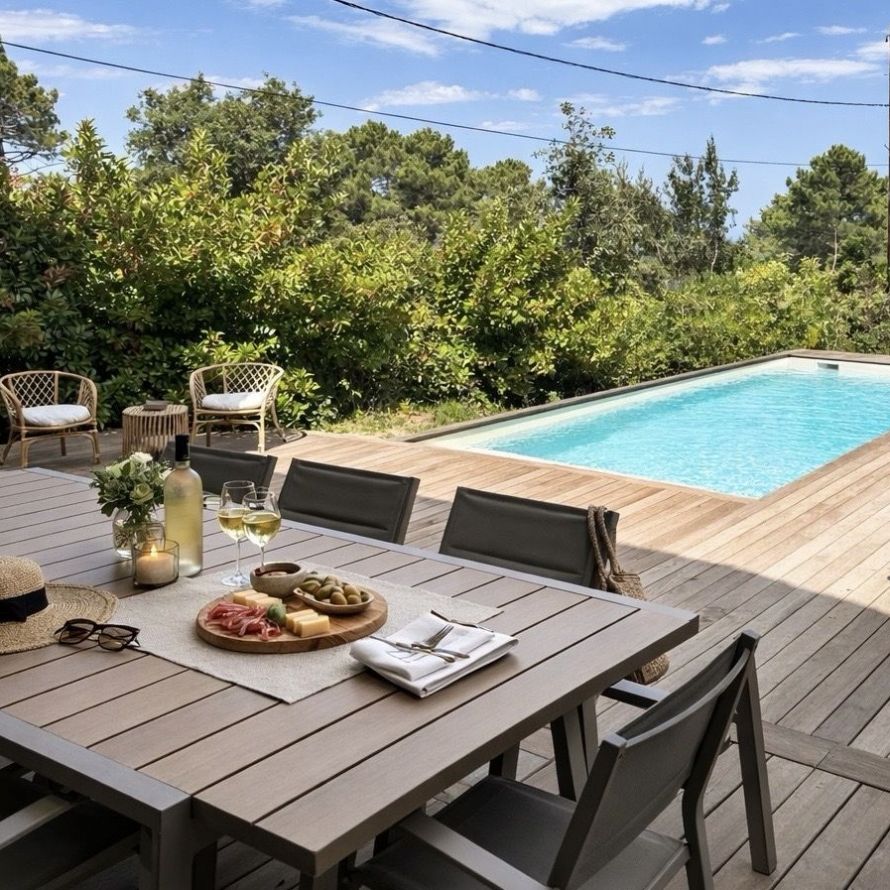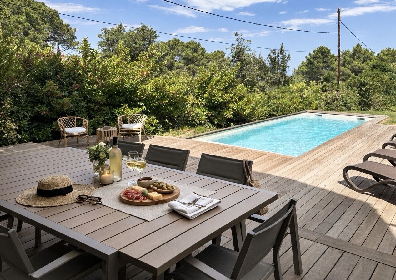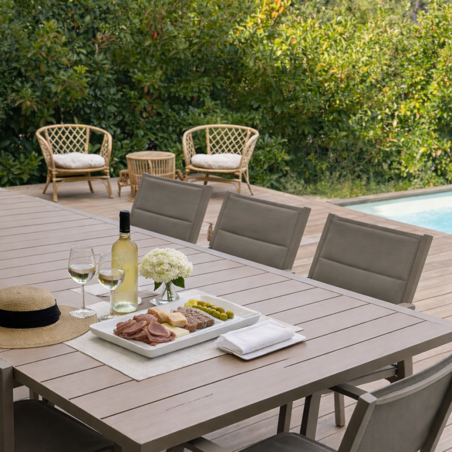 La terrasse, avec accès direct à la cuisine, est idéale pour vos repas en plein air, sublimés par de savoureuses préparations à la plancha.