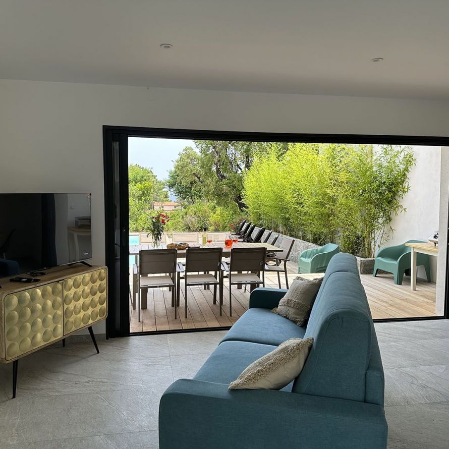 Découvrez cette magnifique villa récente située dans la micro région de la Côte des Nacres, en Corse, offrant une vue imprenable sur la mer.