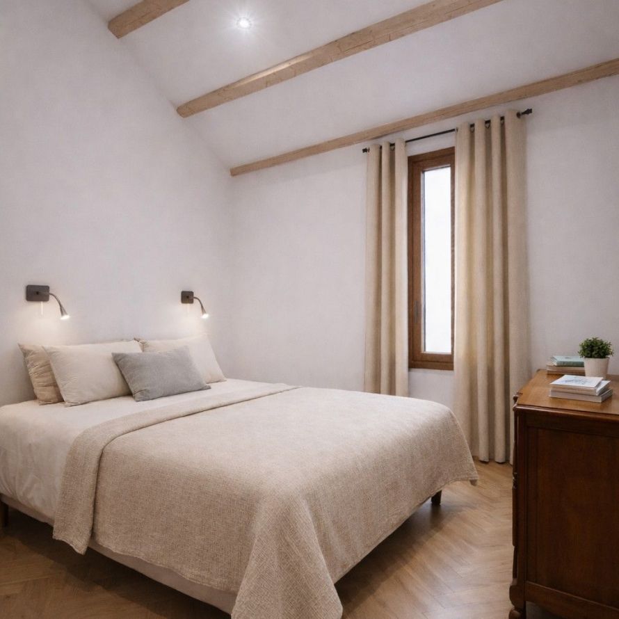 Au cœur du village de San-Martino-di-Lota, cette villa en pierre pour 6 personnes allie charme corse, authenticité et confort moderne. Le rez-de-chaussée offre un salon avec cheminée, un séjour lumineux, une cuisine ouverte équipée (dont machine à café Dolce Gusto) et un WC indépendant. À l’étage, trois chambres : suite parentale avec salle d’eau (douche, double vasque), chambre avec deux lits simples (90 cm, modulables en lit double 180 cm), et chambre avec lits superposés (90 cm), plus une salle de bain indépendante avec WC. À l’extérieur, parking privé pour 3 véhicules. Un lieu paisible, proche des commodités et plages.